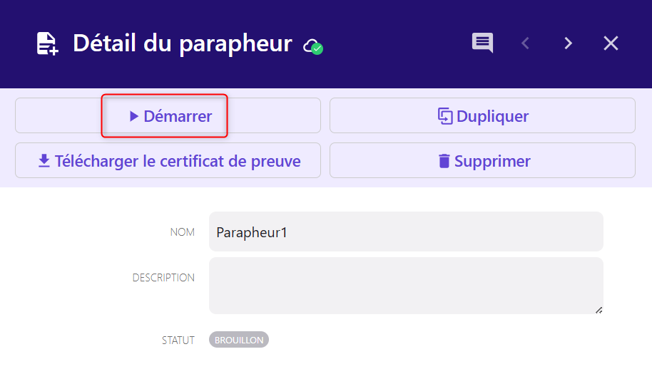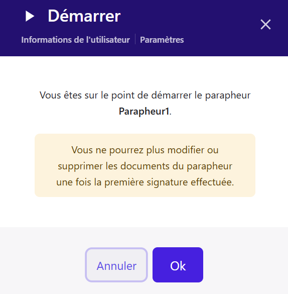 Cliquer sur "Démarrer le parapheur"