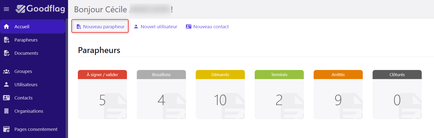 Créer un nouveau parapheur et cliquer alors sur "Nouveau parapheur"