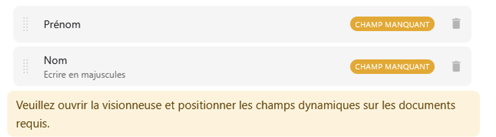 Lors de l’ajout d’un champ, la mention « champ manquant » apparaît pour indiquer qu’il doit