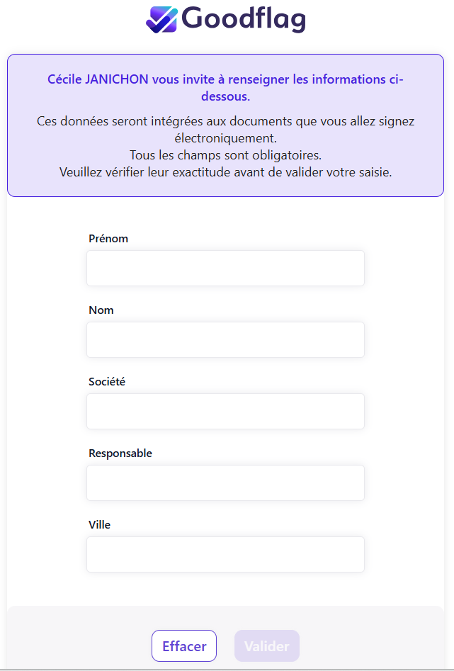 Ces informations seront affichées au signataire telles qu'elles ont été saisies. De plus, les champs apparaitront dans le formulaire dans l'ordre défini par le gestionnaire.