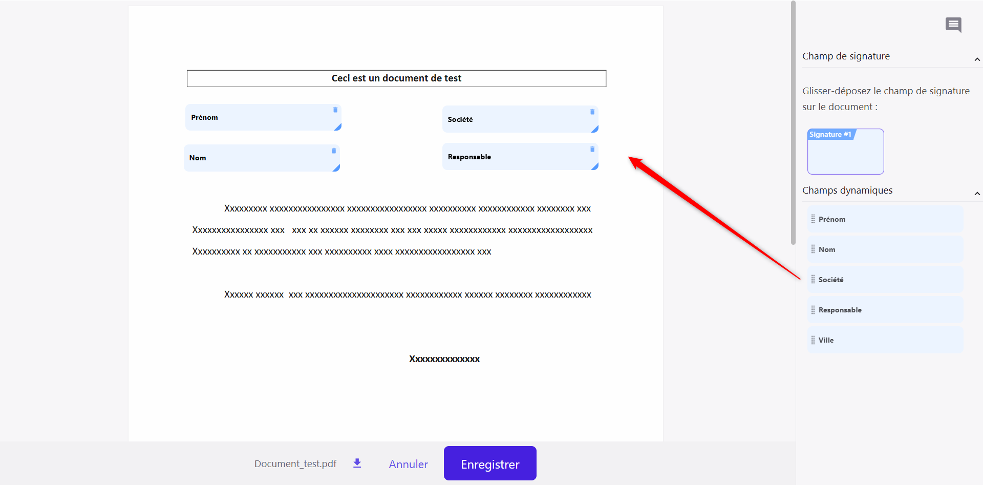 Le mode « Signataire unique » permet au gestionnaire de configurer des champs dynamiques destinés à être complétés par le signataire.