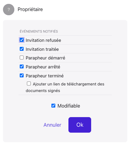 / Les évènements pour lesquels le propriétaire d'un parapheur doit être notifié :