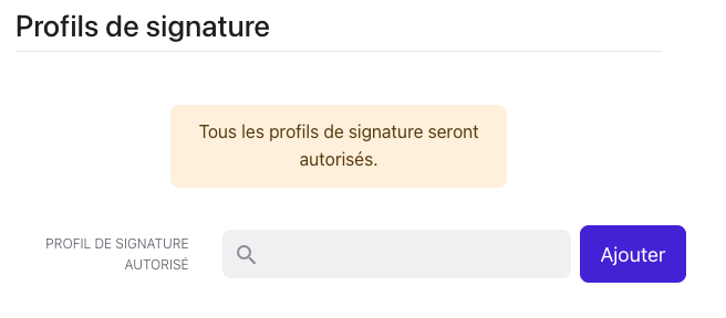Si aucun profil de signature n'est ajouté, alors tous les profils de signatures seront autorisés.