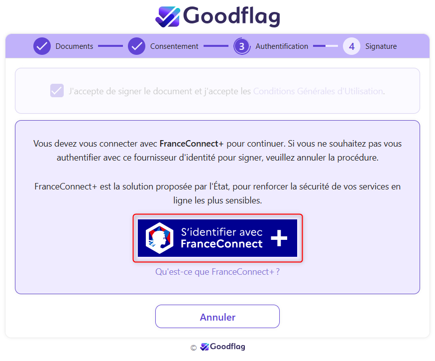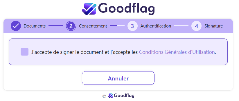 "J'accepte de signer le document et j'accepte les Conditions Générales