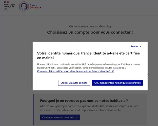 Cliquer sur "Oui, mon identité numérique est certifiée"