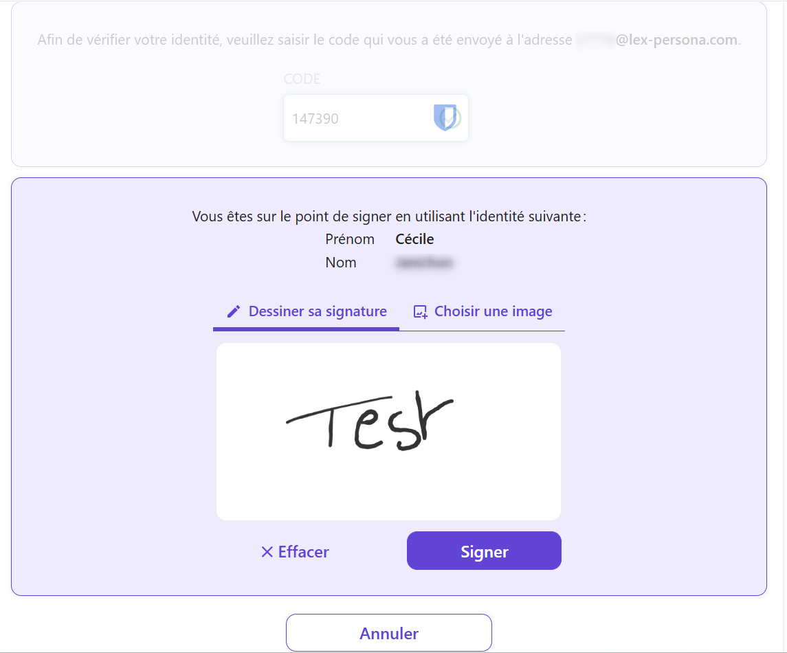 Signature avancée - OTP courriel & certificat personnel et Signature
