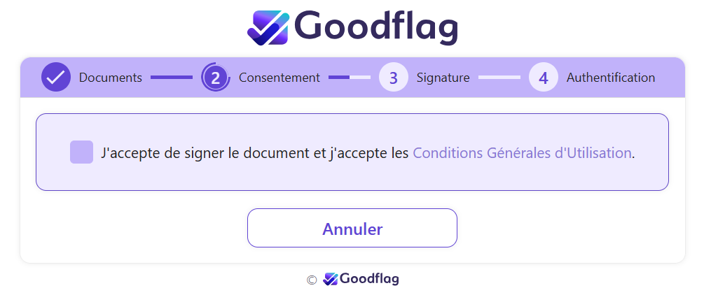 "J'accepte de signer le document et j'accepte les Conditions Générales