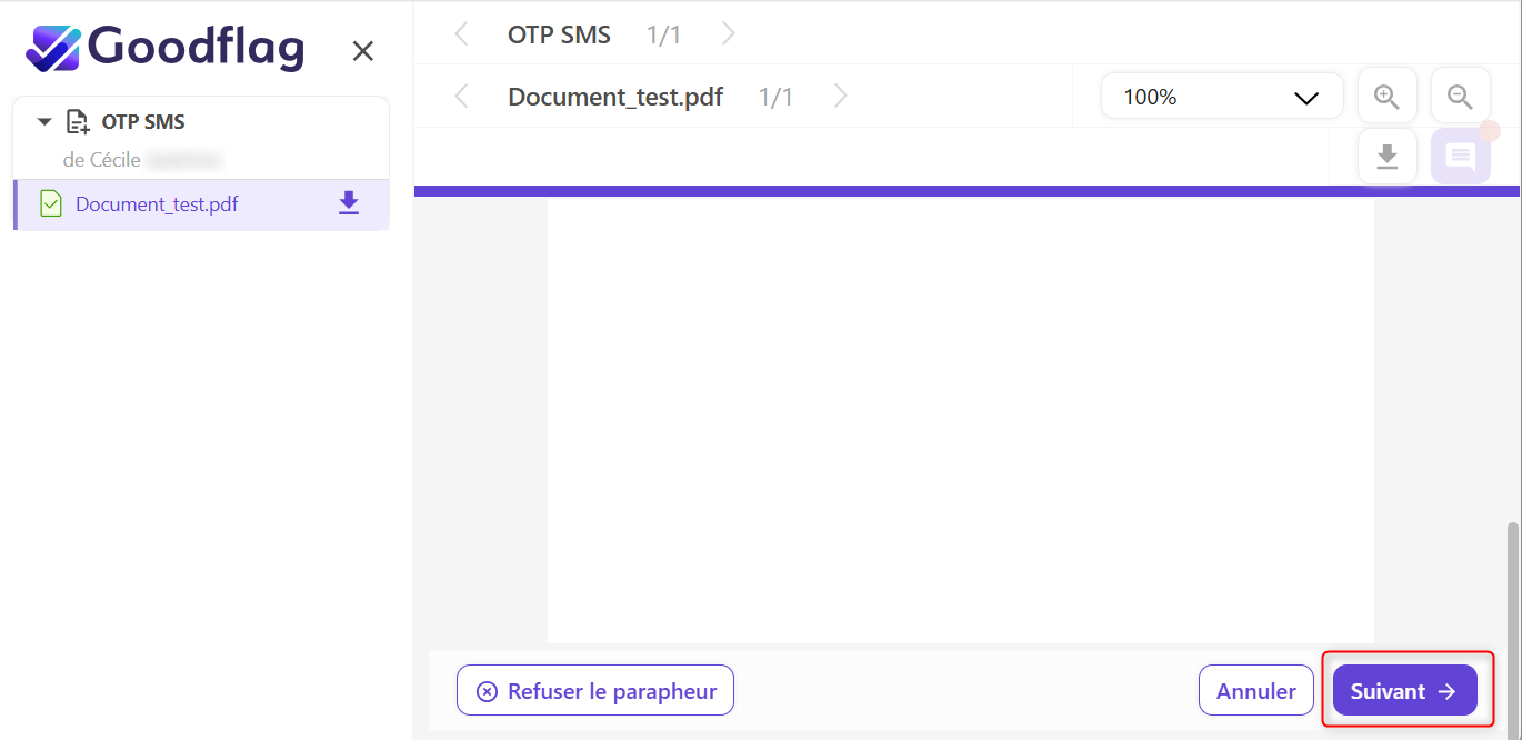 convient de sélectionner la page de consentement Signature avancée - OTP SMS & certificat