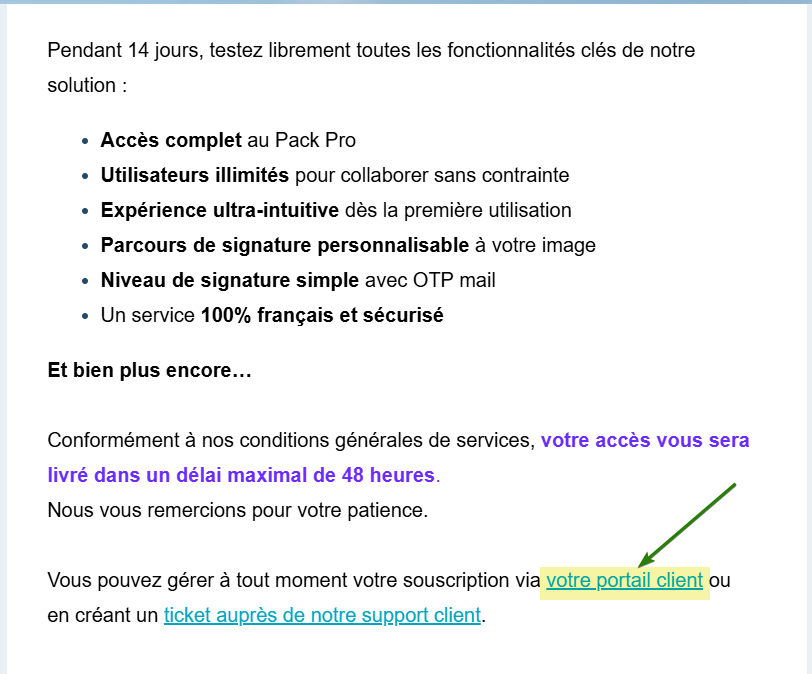 ⇢ Le lien est également disponible dans l’email de bienvenue que vous avez reçu le jour de la souscription :