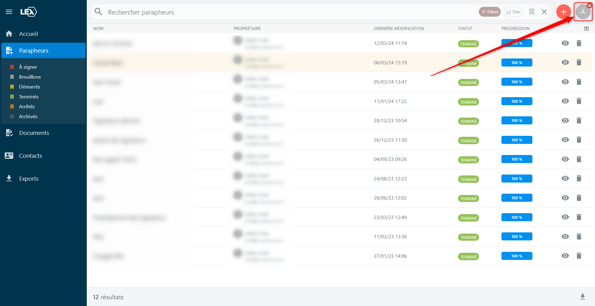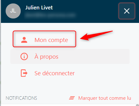 Pour ce faire, il sera nécessaire de cliquer en haut à droite sur vos initiales :