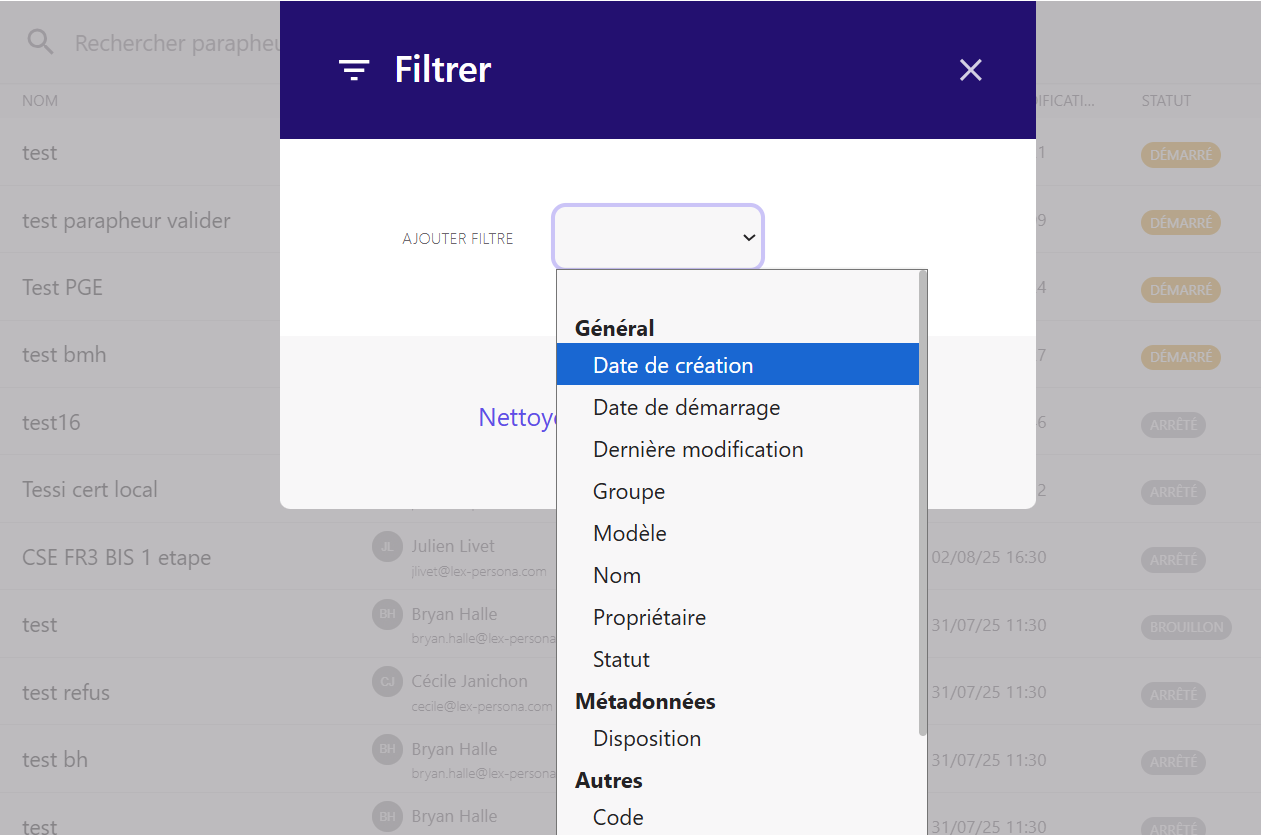 uniquement les parapheurs créés cette année.