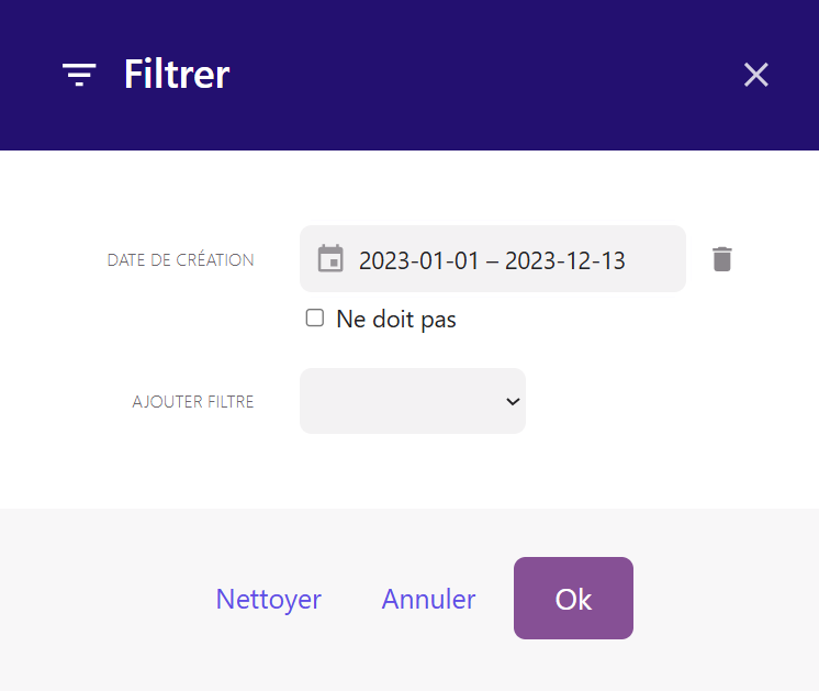 Cliquer sur « Ajouter un filtre » et sélectionner « Date de