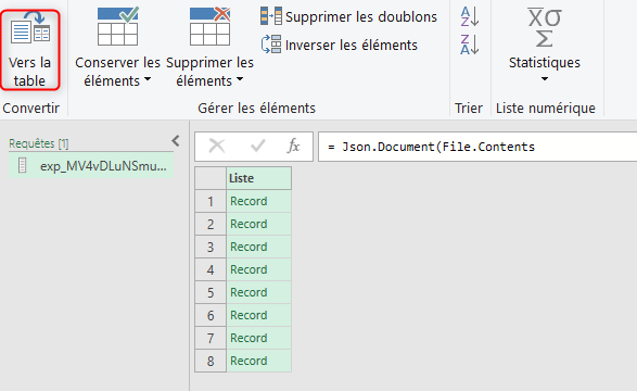 Sélectionner « Tableau JSON ».