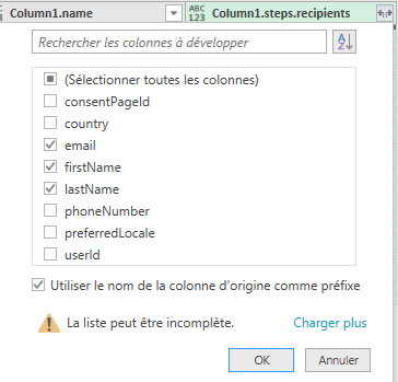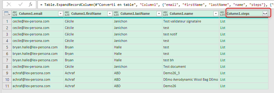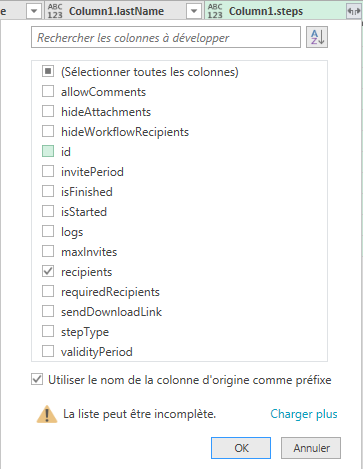 Cliquer sur la double flèche à côté de «Column1.step ». et