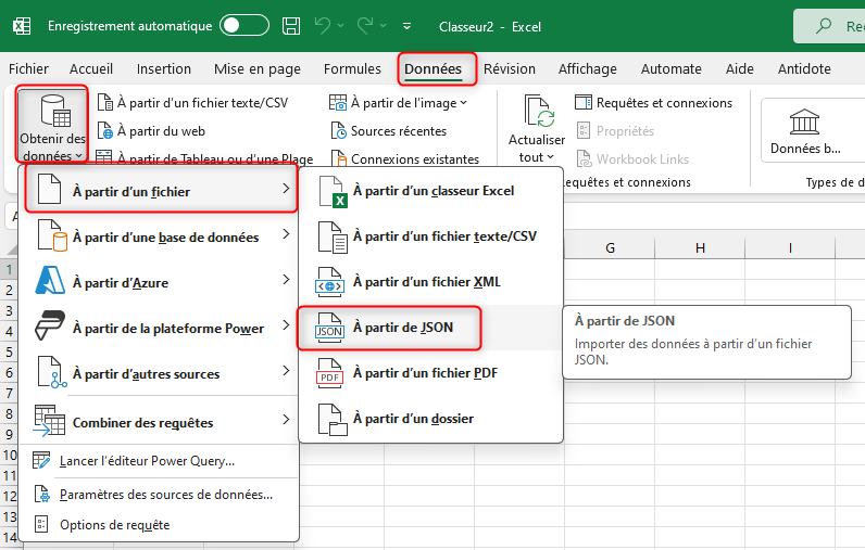 sur « Données », « Obtenir des données », « À