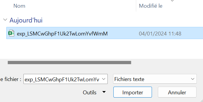 Sélectionner l’export effectué précédemment.