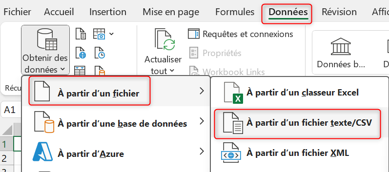 Ouvrir Excel, puis cliquer sur « Données » puis «À partir d’un