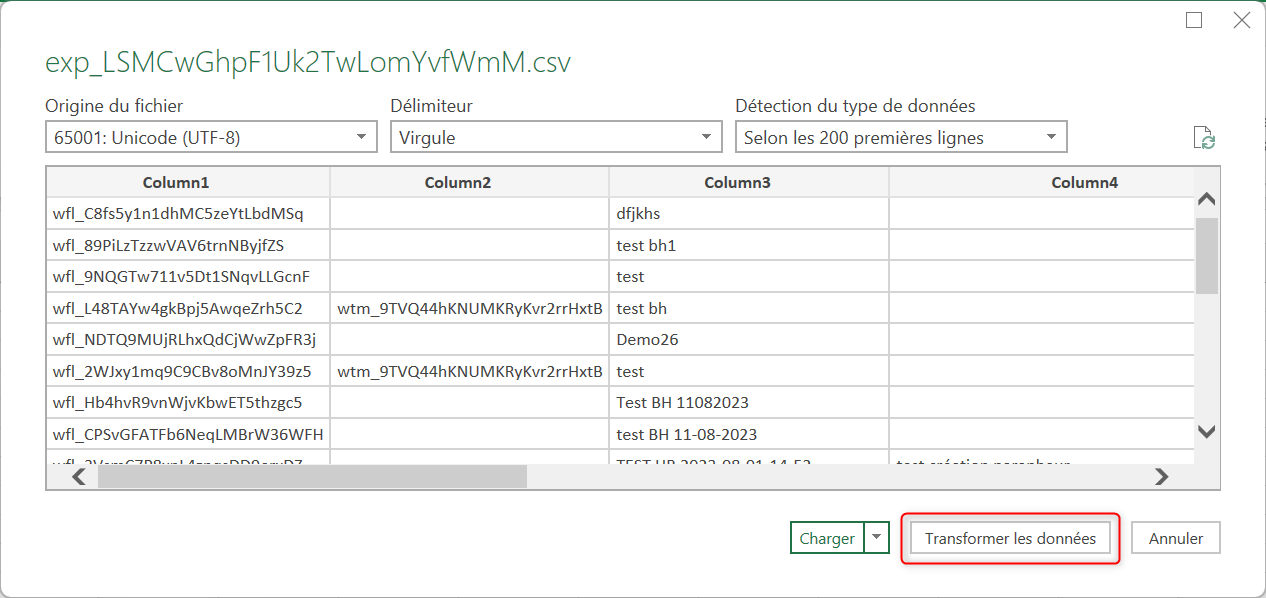 Cliquer sur « Transformer les données ».