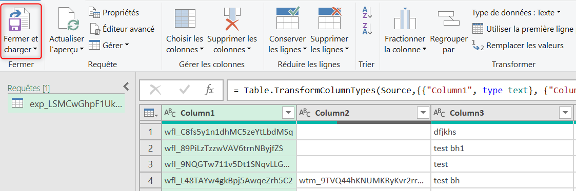 Après vérifications des colonnes, cliquer sur « Fermer et charger ».